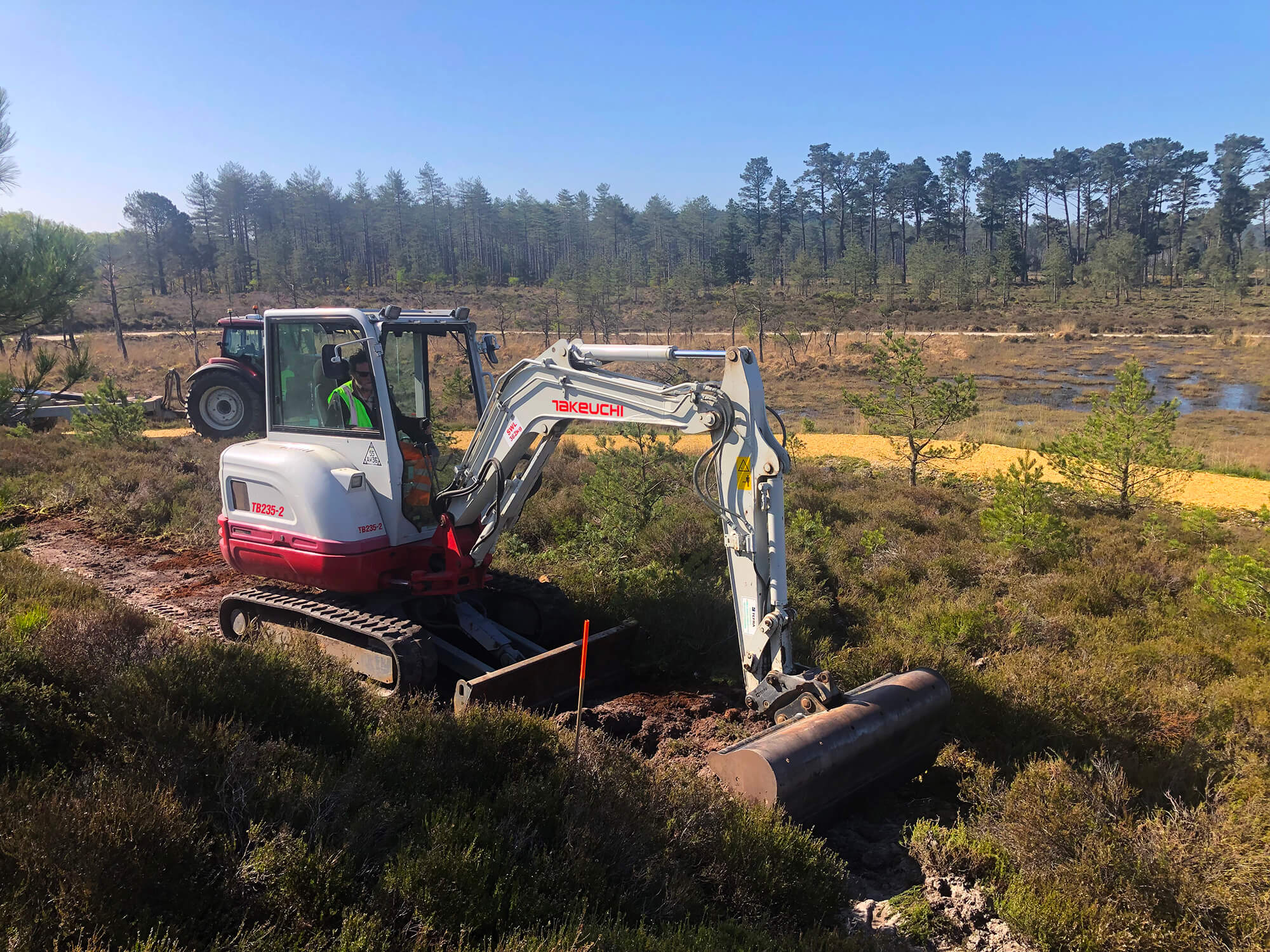 AlaskA's smallest excavator is a great machine for limited access spaces and is easy to move around to multilple locations. Pictured here creating bare ground scrapes on the heathland reptile and invertebrate habitat. Photo: Morden Bog National Nature Reserve, Wareham Forest for Forestry England.
