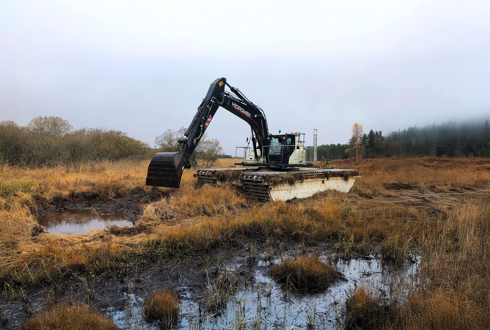 Our fleet of specialist low ground pressure excavators, amphibious machinery and innovative attachments allows us to work where conventional equipment cannot. From tilt rotators for precision placement to mobile incinerators for remote sites, every piece of kit is chosen and maintained to deliver maximum ecological benefit with minimum impact. We use biodegradable hydraulic oil and HVO fuel as standard. This isn't just machinery — it's what makes the impossible possible.